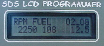 As the engine enters each new rpm range, several samples of O2 voltage are taken and the average of these samples are held in RAM. Then as you scroll through the RPM FUEL values, the logged readings are displayed on the right hand side of the LCD programmer display.