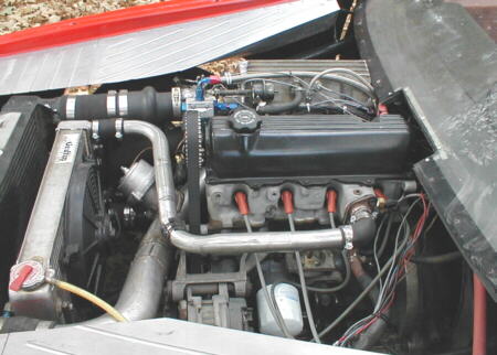 Power comes from an '89 T-2 2.2L engine fitted with forged pistons, aluminum rods, ported, big valve head, studded mains and head, Super 60 turbo, 3 inch plumbing, Viper fuel pump and nitrous. Engine management is handled by an SDS EM-3 4F