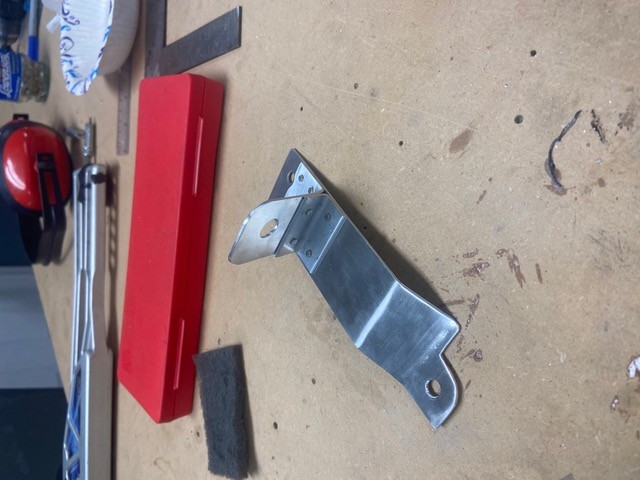 Jim Roman provided these photos of the throttle linkage bracket he fabbed for his 390-119 installation