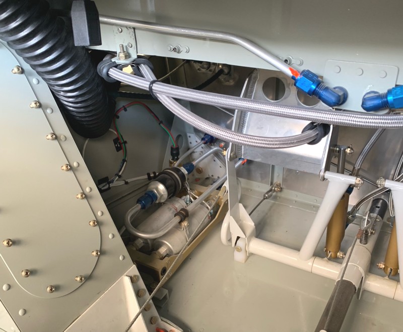 TS Flightlines RV-14 mockup at Osh '21 showing the basic SDS fuel system components and beautiful hardware they supply