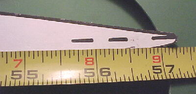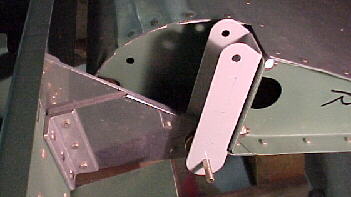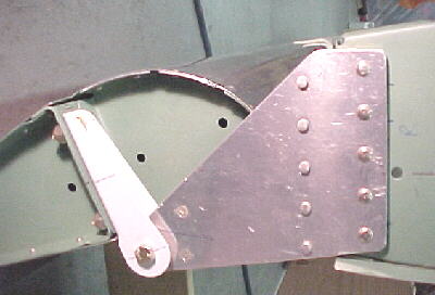 Cut, filed and radiused slots in the front wing mount fitting attached to the fuel tanks.