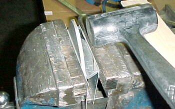 The front wing/tank attach fittings need to be bent slightly to conform to the fuselage mating angle. I did this by clamping the fitting in protected vise jams and used a dead blow hammer with a piece of 1/4 plywood for protection of the fitting.