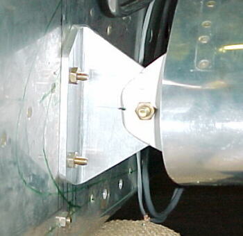 The fitting was clamped to the tank tab then after careful measurement from the existing rivets, holes were drilled from inside the fuselage through the fittings. Measure at least 3 times before drilling! Pilot drill with a #30 then carefully enlarge with a 3/16 bit.