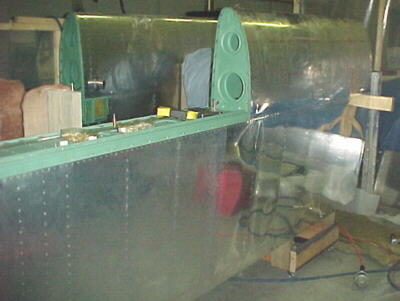 It should be noted that the double scale detail "BB" on drawing 21, showing skin overlap detail is inconsistant with figure QB7-2, its text and the text on page Q7-3. Drawing 21 shows the outboard wing skin sitting on top of the inboard skin. This caused the usual head scratching, confusion and wasted time. The outboard skin actually slides underneath the inboard skin. Once this was established, it was simply a matter of LOTS of drilling, clecoing, deburring and dimpling as there are hundreds of holes here. The job turned out well and the wing is 90% done now, ready for the pre-cover inspection and final riveting.
