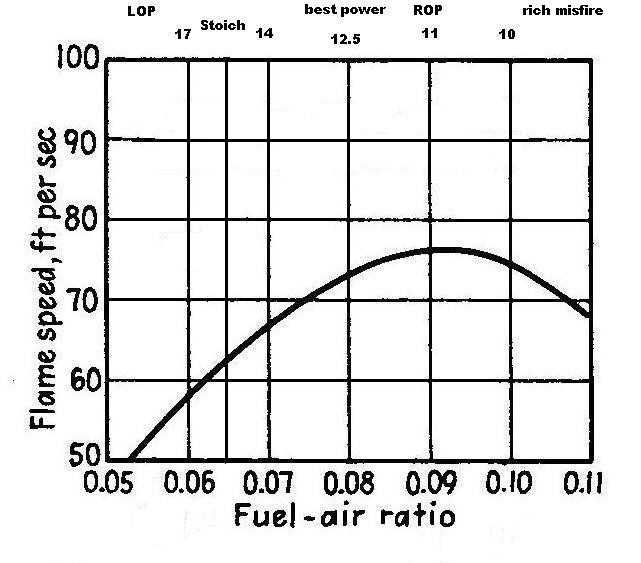 The figure below illustrates how combustion flame speed changes with air/ fuel ratio.