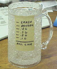 This deluxe vehicle is fitted with the very latest in high tech instrumentation- a fluid filled G meter, capable of measuring forces in all directions simultaneously. F 16 jockeys can only dream about this kind of information being available on their HUDs, although their flight suits might be slightly drier after use.