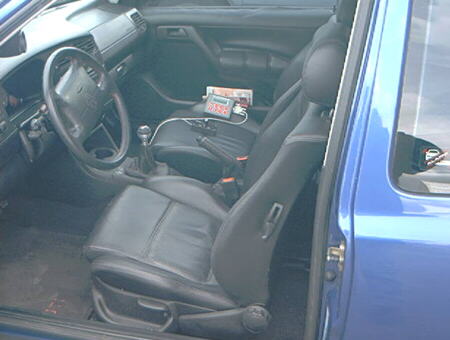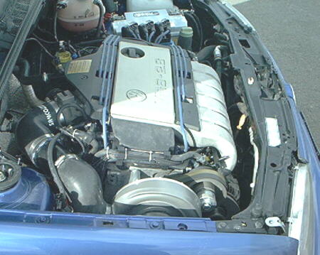 The engine is a VR 6, 2.8 liter with 10 to 1 compression. Its running a centrifugal style blower making 5 pounds of boost. The fuel and spark is handled by the SDS EM-3 6F, using a 2 bar MAP sensor, 48 lb.hr injectors and Moroso BlueMAX wires. Kyle is planning on using this vehicle as the street strip application, running high octane fuel at the strip and 92 for the street.