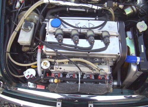 Power comes from a 1300cc DOHC conversion. A custom made manifold mounts Kawasaki ZZ-R throttle bodies and modified Toyota injectors. An SDS EM-4 4F controls fuel and Nissan individual coils.