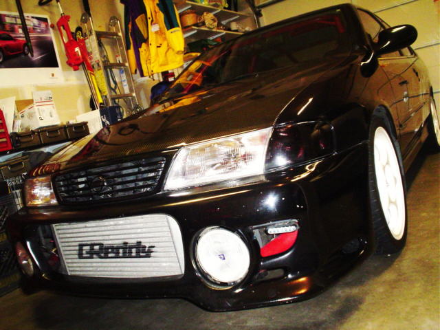 Power comes from a SR20DET GTI-R with 720cc top feed injectors and custom fuel rail, SDS EM-4 4F engine management system, Eagle rods and CP pistons using ARP bolts, knife edged crank shaft, Garrett GT-25/40-R dual ball bearing turbo, Greddy Type-R blow off valve, Greddy intercooler, Turbonetics Deltagate, Megen turbo manifold, custom 3 inch turbo back exhaustand dual 4 inch outlet custom mufflers. An ACT clutch kit w/ heavy duty pressure plate & 6-pad race disc and Prothane polyurethane motor mounts help hook it up.
