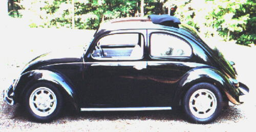The 1960 body sits on a 1976 IRS floorpan with 4 wheel discs, sway bars, Porsche 914 wheels wityh Pirelli 185-65 15s. The front beam has 2 inch dropped spindles and has been narrowed 2 inches to make them fit the fenders properly.