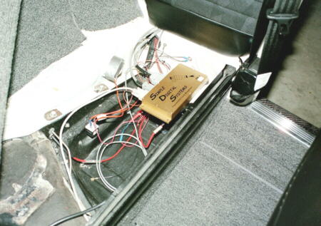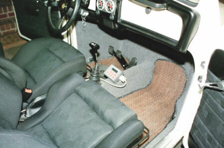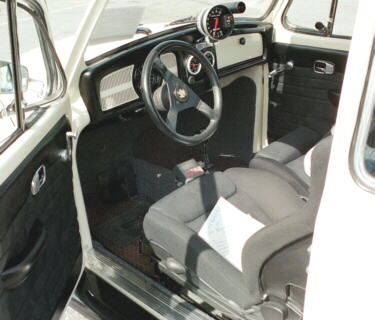 Engine management is by an SDS EM-3 4F updated to EM-4 specs. A Porsche EFI pump resides under a 1976 VW fuel injection gas tank running through SS lines to a 3 micron fuel filter. Custom fuel rails feed fuel to Bosch injectors and an Aeromotive pressure regulator. Crank trigger mounts onto previous fuel pump location, behind crank pulley. The coil pack is mounted on the fire wall and SDS computer is mounted under the back seat with the controller fitted by velcro to a custom aluminum mount on the front transmission tunnel.