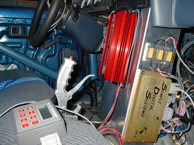 Power comes from a Supra 2jzgte engine swap with a 321 stainless steel header that David fabbed himself. Turbo is a Turbonetics T72 P-trim with a .81 A/R. Wastegate is a Tial 40mm. Intercooler is an Isuzu NPR with 2 3/4 stainless intercooler piping. Engine is completely stock from top to bottom including stock cams. Injectors are 83lb top feed. Controlling them is an SDS EM4-6F with MSD coils. Power was 480whp at 18psi boost and 677whp at 33psi boost and 678 ft lbs or torque. Tranny is a GM powerglide with a 5000rpm stall with a custom adapter plate. Rear end is factory Toyota 1 ton with 3.90 gears and 28X11.50X15 Mickey Thompson ET streets. Quarter mile shakedown runs at only 18 psi boost netted 10.5 @ 133mph with a 1.5 60ft.