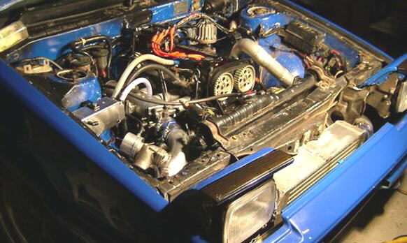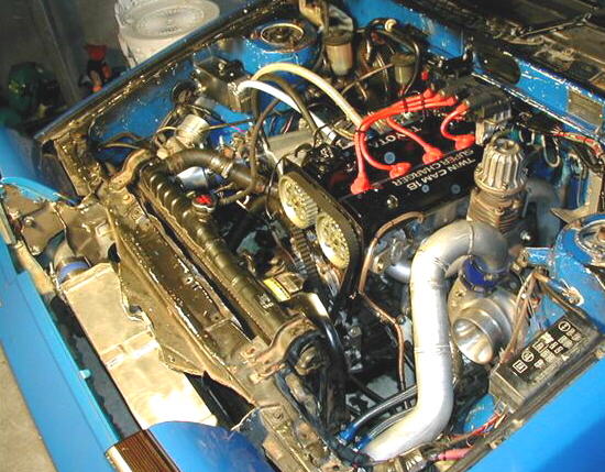 The Toyota 4AG engine mods are as follows: 4AGZ stock block and crank, CP 81.5mm pistons w/ Total Seal rings, Pauter billet connecting rods, ARP studs top and bottom, HKS 1mm head gasket, 304 degree 8.5mm lift cams, intake and exhaust, Toda valve springs and Toyota Vitz shimless lifters, Extensive port and combustion chamber work (based on Motorworx design), AGP GT61 Turbocharger with P trim .56 exhaust, HKS cast T04 exhaust manifold and 48mm waste gate, Motorworx custom intake manifold, ARC Super Intercooler (4 inch core).
