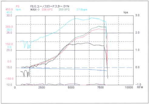 Two days after this car was submitted for a project car, it stripped all the 3rd gear teeth off under acceleration. The internals were replaced with an OS Giken close ratio gear set. The car was put on the dyno and made 359.9ps, and 272 pounds of torque to the rear wheels at 20psi boost.