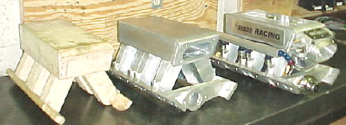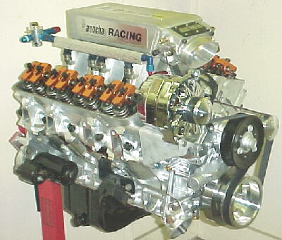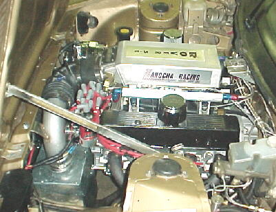 The gold car is powered by a Rover 4.6 stroked and bored to 5.0 liter with 11:1 pistons, Manley rods, ported, polished and flow bench tested heads with a custom sheetmetal intake.