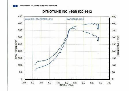 The engine dynoed at 401 whp, 365 ft./lbs. @ 23 psi. Fastest 1/4 mile to date: 11.91@124mph