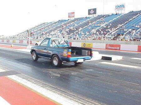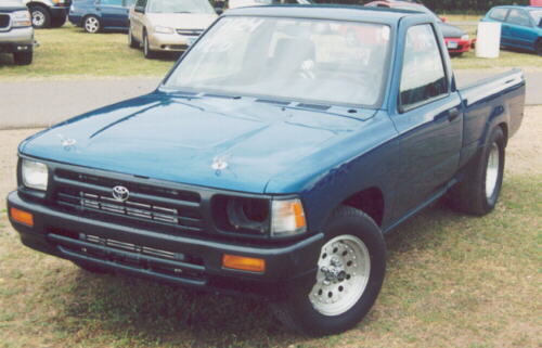 This truck is owned by David Gysland from Rochester, Minnesota, USA and is used for import drag racing, so far running a best of 11.65 @ 122mph. The motor consists of a Toyota 22r, SDS EM3-4E, LC Engineering stage five head, camshaft is a custom grind by LC that is .510 lift, 264 duration. The intake is a custom sheetmetal made by Force Fuel Injection running a Ford 65mm throttle body and Accel 83lb injectors. The bottom end consists of the factory forged crank, Eagle rods and JE 8 to 1 compression pistons with total seal rings. Head is attached to the block via ARP head studs and in between resides a stock NAPA $20 dollar head gasket. Ignition is handled my a MSD Digital Six Plus and Crane PS 92 coil all controlled by the SDS EM3.