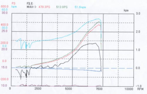 The engine makes 479ps uncorrected, and 513ps corrected to the rear wheels at 1.3kg of boost. The engine is built to run 1.8 optimally but Motorworx only had time to tune it to 1.3 the night before the drag meet. The car was the fastest and quickest in the unlimited SR20 street class, however, it went down in the semi final when it lost traction in 2nd gear and the rear end tried to come around. Adam caught the car, got it straight, and lost by a fender to a supposed 700hp Silvia.