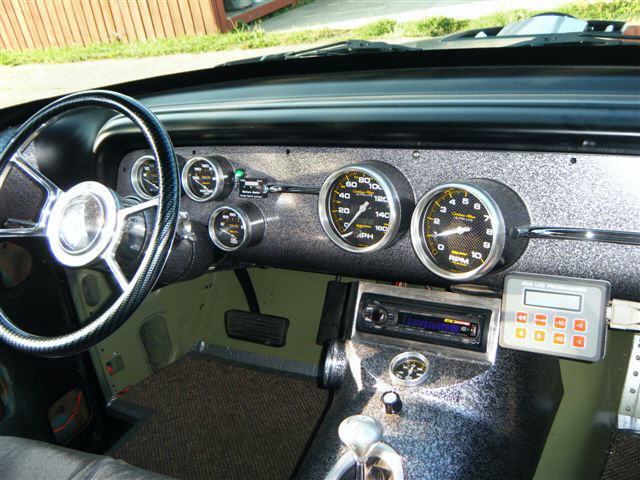 Owner-built chassis c/w Air Ride air bags, custom front upper A-arms Ford 9" rear end with 3.71 gear ratio and GM 700-R4 lock up over drive transmission. Brakes are Baer 13" rotor fronts and 12" rotor rear.