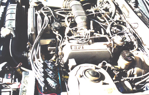The stock exhaust finally fell off and was replaced with a 2.25 inch system and Dynomax Turbo muffler. The oulet was restricted down from 2.5 inch to 2 inch to keep sound levels reasonable. The system made the engine come alive over 4750 rpm as the stock system was really corking the exit end up. The engine had been detuned via retarded ignition to run on 87 octane fuel. Now with exhaust improvements and full timing restored, output is now close to 175hp at 6000 rpm. Much more fun to drive.