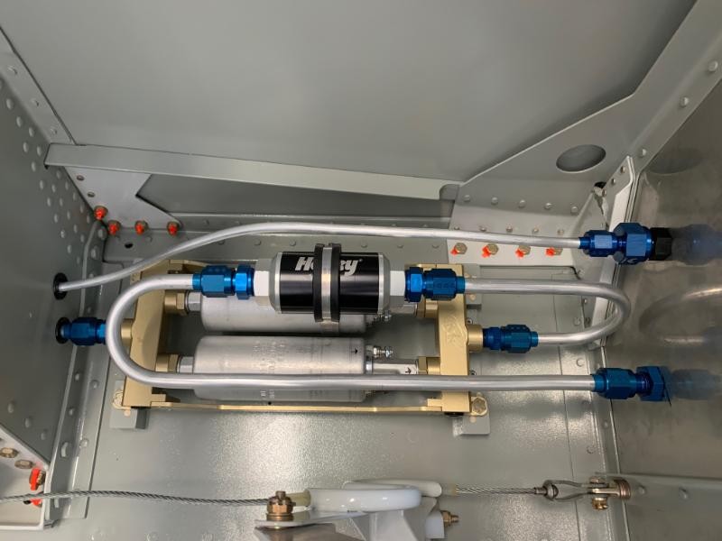 TS Flightlines RV-14 mockup at Osh '21 showing the basic SDS fuel system components and beautiful hardware they supply