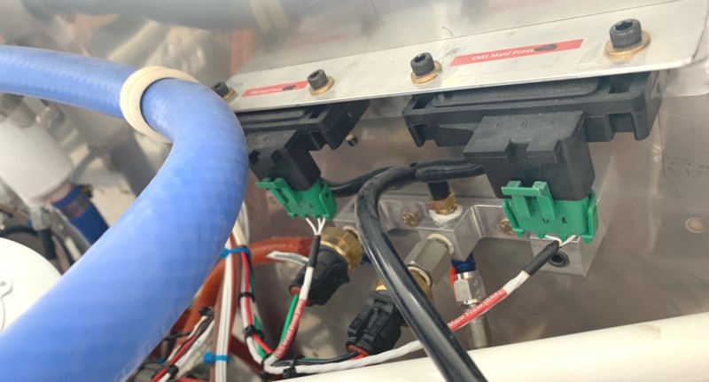 Basic components of dual EM-6 4F EFI aviation system for Lycoming 4 cylinder engines. No wiring shown here.