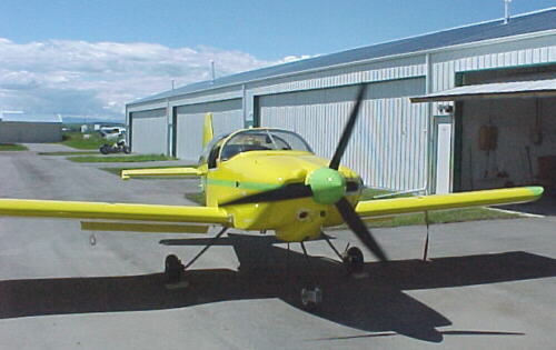 Now have almost 2.5 hours of ground running, testing mainly cooling and turbo oil drain back issues. Have jury rigged a turbo scavenge pump which seems to have solved the oil spitting problem completely. We will be doing a permanent installation with a proper pump later this week. The ground cooling is marginal at present. Instrumentation shows only a 7C drop across the rads at ground idle. We will be testing an electric cooling fan mounted behind one rad this week also. Also being added will be 2 lightweight ventilation blowers as the prop blast proved inadequate for any cooling/ heating flow at idle also. Other plans are to install an air/ oil cooler with thermostat to replace the heavy oil/ water cooler, hopefully total weight gain will be under 3 lbs. for all these mods. Also being worked on are intercom and radio problems plus a new GPS mount for less vibration.