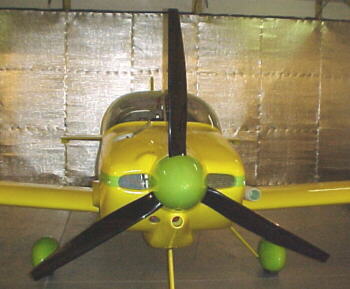 For the first 20 hours of flight testing, the aircraft was fitted with an in-flight adjustable, IVO 76 inch, 3 blade Magnum with 45-105 inch pitch range. These propellers use a DC motor driving a screw jack and trunion to move torsion rods buried into the composite blades to twist the blades, leaving the hub portion of the blades motionless. The propeller has performed well but the aircraft is underpropped at higher power settings. On Feb. 17/04 a new set of paddle blades with 30-90 inch pitch range was fitted for evaluation.
