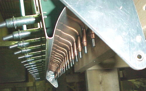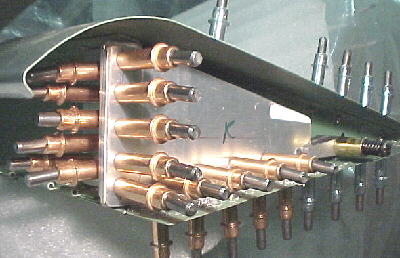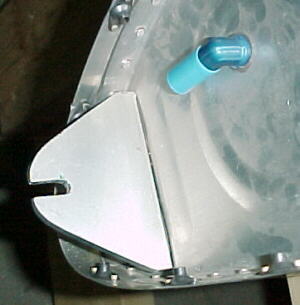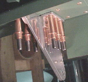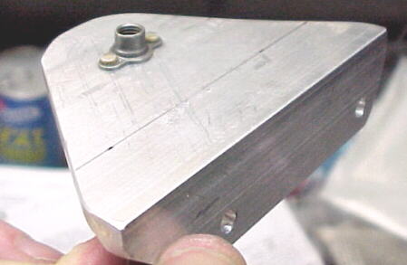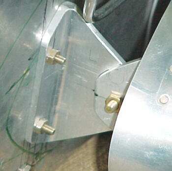 Cut, filed and radiused slots in the front wing mount fitting attached to the fuel tanks.