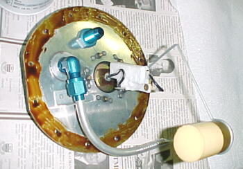 Finish the installation by drilling the hole through the front of the fitting and tab. The D bit specified in the plans did not allow the provided bolts to go through. I enlarged to 1/4 inch. The tank tab can be slotted after removing the tank or wing later.