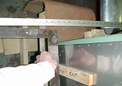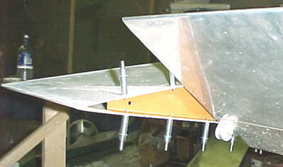 Next, I determined that the wing had a slight forward sweep. This was done with a square against the firewall and a straight edge projecting from the fuel tank edge forward. Unfortunately Van's did not make the hole for the spar to penetrate the fuselage side high enough to get the wing square. The spar had to be trimmed and the fuselage hole enlarged considerably to correct this. Not easy to do with the wing on. By measuring at different stations along the wing, I found the left panel had .3 degrees of washout at the tip with the root set a 0. I don't know if this is intentional or not.