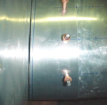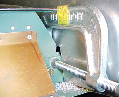 The fitting was clamped to the tank tab then after careful measurement from the existing rivets, holes were drilled from inside the fuselage through the fittings. Measure at least 3 times before drilling! Pilot drill with a #30 then carefully enlarge with a 3/16 bit.