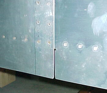 Lap joint showing outboard skin (right) slid underneath inboard (Left)