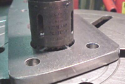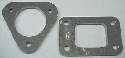 The head and turbo flanges are laid out on 3/8 to 1/2 inch mild steel plates using the gaskets as tracing patterns. A drill press and hole saw are used to cut the holes. For rectangular holes, 4 smaller holes may have to be drilled and then hand filed to obtain the correct shape. If you have access to a plasma arc cutter, this job will go much faster!